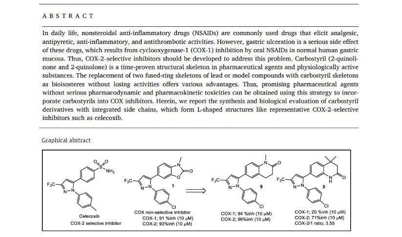 題目 :Synthesis and biological evaluation of structurally L-shaped carbostyril derivatives with integrated side chains as cyclooxygenase inhibitors